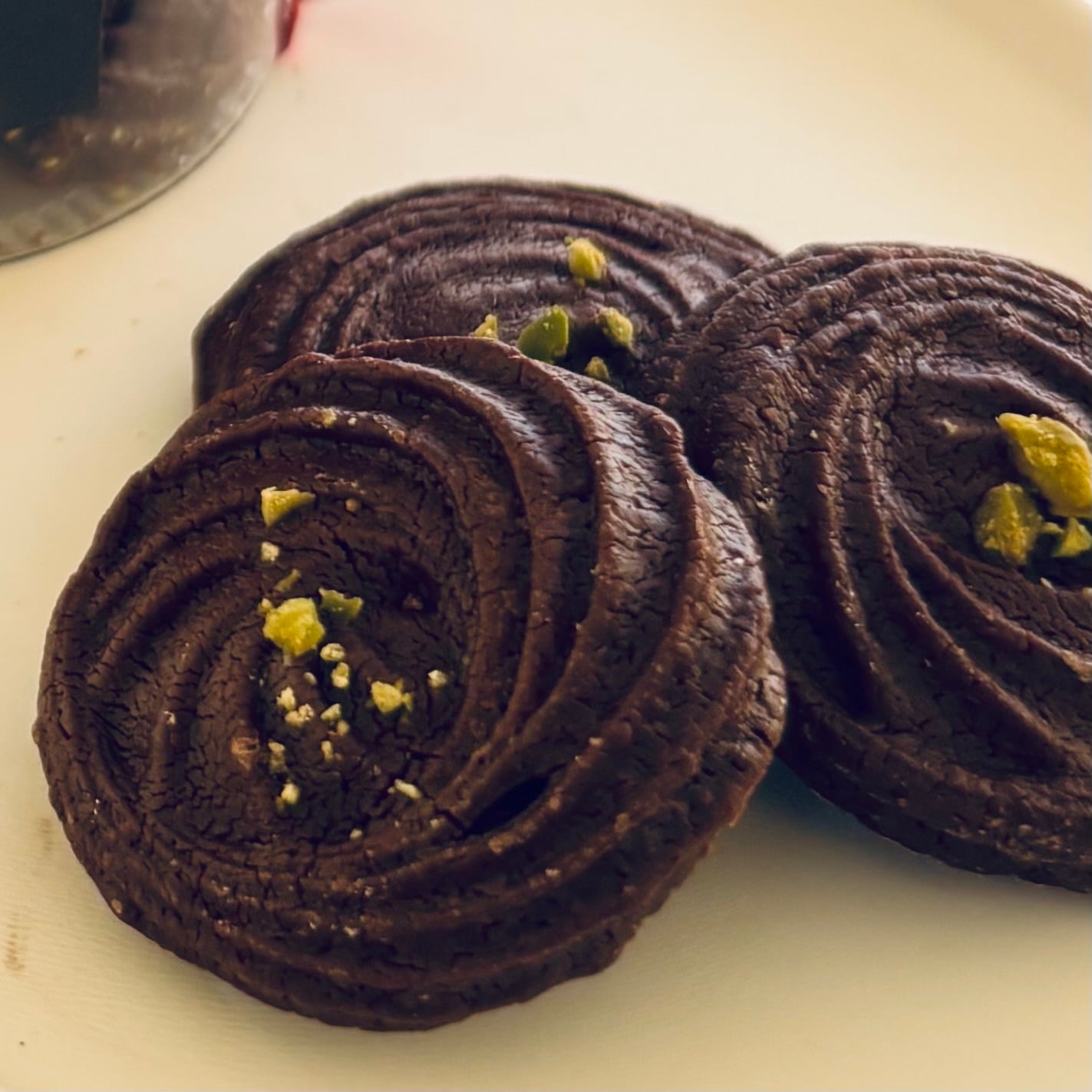 ・使用素材:チョコレート、コーンスターチ、薄力粉、ピスタチオ、アーモンド、グラニュー糖、ココアパウダー